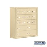 | ✚✚✚ Cell Phone Lockers - 16 Door - Master Keyed Locks - Sandstone Cell Phone Lockers are ideal for use in health clubs, government facilities, office buildings, schools and other settings where small personal items need to be stored safely and securely. Each locker can accommodate various items such as cell phones, keys, wallets, cameras and tablet PCÕs. About the Design: The Cell Phone Lockers are constructed of heavy duty aluminum featuring a durable sandstone powder coated finish. Designed with 12 A (5 1/4"H x 6 1/2ÓW) and 4 B (5 1/4"H x 13ÓW) sized doors, each unit is 9 1/4"D and has a compartment depth of 8Ó. To easily identify each compartment, the locker door includes a 5/8ÓH x 2ÓW clear plastic card and cardholder. Each unit door features a 5-pin cylinder cam lock with 3 keys and includes a master control key for access to all compartments. The Cell Phone Locker can be securely surface or countertop mounted. About the Options: Each locker door can be engraved for an additional charge. Custom Engraved Placards - 1 Card Per Door Custom Engraved Door - Standard White Filled Text Custom Engraved Door - Black Filled Text About the Features: Heavy Duty Aluminum Construction Durable Master Keyed Locks Designed with Clear Plastic Identification Cards and Cardholders Custom Engraving Options Available 12 A Doors - 5 1/4"H x 6 1/2ÓW 4 B Doors - 5 1/4"H x 13ÓW 3 Keys Per Door and Master Control Key Included Overall Dimensions: 31ÓH x 30.50ÓW x 9.25ÓD Weight: 60 lbs.