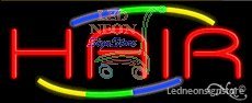 Hair Neon Sign 13 inch tall x 32 inch wide x 3.5 inch Deep inch deep outdoor only with outdoor box for use under regular weather made in USA