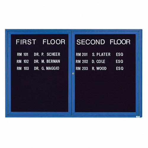 2 Door Indoor Enclosed Directory Board with Blue Anodized Aluminum Frame 48''H x 72''W