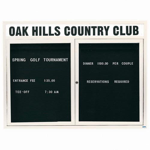 2 Door Outdoor Enclosed Directory Board with Header & White Anodized Aluminum Frame 48''H x 60''W
