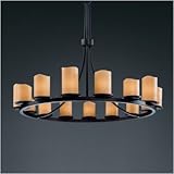 | ✚✚✚ Justice Design CNDL-8715-14-CREM-MBLK Dakota 15-Light 1-Tier Ring Chandelier The rich golden glow of candles is captured in the contemporary CandleAria Collection. These fixtures come with candle-like shades that add considerable light, warmth, and charm to any room. • Approximate fixture weight: 100 lbs.