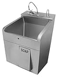 | ✚✚✚ Sloan 3850201 N/A Optima Deluxe Single Station Stainless Steel Scrub Sink with Sloan OPTIMA Sensor Activated Faucets with Laminar FlowSpray Head ESS-3100-C Deluxe Single Station Scrub Sink with Laminar Flow Spray HeadSink constructed from 1"gauge, Type 304 stainless steel with bead blast finish on sink bowl interior for superior wash-down characteristicsCabinet constructed from 1"gauge, Type 304 stainless steel with satin finish1"gauge "lift-up" style front soap panel for easy maintenance access1" stainless steel dome strainer with integral tailpiece and P-trap"Z-clip" wall hangers for mounting (fasteners by others)Unit supplied with 20" flexible supply hosesSloan OPTIMA Faucet for hands-free operationKnee activated soap dispenser for hands-free operationSink is shipped pre-plumbed for easy installationTrim Plate Kit for 4" (1" mm) Centerset SinkSloan OPTIMA EL-1"0-LL-S Self-adaptive Sensor with 2 second On-delay.Sensor mounted in the front edge of sink for hands-free operation.Splash-proof Control Modules with Troubleshooting LED Indicator LightsFiltered Solenoid Valve with serviceable "Y" Strainer FilterChrome Plated, Brass, Deck Mounted Gooseneck Spout with Surgical Bend2.2 gpm (8.3 Lpm) maximum Pressure Compensating Laminar Spray Head ("C" Variation) or 2.2 gpm (8.3 Lpm) maximum Pressure Compensating Shower Spray Head ("H" Variation)Laminar Spray Head