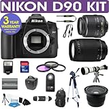 REFURBISHED Nikon D90 Digital Camera + Nikon 18-55mm VR Lens + Nikon 70-300mm Lens + .40x Wide Angle Fisheye Lens + 650-1300mm Zoom Lens + 3 Year Celltime Warranty