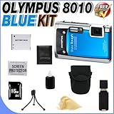 Olympus Stylus Tough-8010 14MP Digital Camera w/ 5x Optical Zoom (Blue) W/16GB SDHC Memory Card + Extended Life LI50B Battery + Deluxe Case w/Strap + USB Card Reader + Memory Card Wallet + Accessory Saver Bundle!This Kit Includes: 1-Olympus Stylus Tough-8010 14MP Digital Camera Digital Camera w/Supplied Manufacturer Accessories Brand New USA 1- 16GB SDHC Memory Card (Dont Miss a Memory!) 1- USB Memory Card Reader (Download Images Quicker!) 1- Lithium Ion Rechargeable LI50 Battery (Not Original Olympus) (Shoot Longer and Stronger!) 1- Padded Carrying Case w/Strap 1- Memory Card Wallet (Stay Organized!) 1- Pack of LCD Screen Protectors (Protect from Dust & Scratches!) 1- Lens/LCD Cleaning Kit 1- Mini Table Top Tripod More about this camera: The Olympus Stylus Tough-8010 is a compact 14-Megapixel digital camera with a 28mm 5x optical zoom lens designed for people with an active lifestyle. The camera is waterproof to 33' (10.06m), shockproof to 6.6' (2.01m), crushproof to 220 lbs of pressure, and freezeproof to 14°f (-10°c). This makes the camera perfect for beach going, swimming, skiing, climbing, hiking or any other outdoor activity, or tough environment. Setting the camera for the perfect photo is easy with scene modes that include Beach, Underwater Snapshot, Underwater Wide 1, Underwater Wide 2, Underwater Macro and Pets. Accessing the camera's controls is a snap with Tap Control. This is especially convenient underwater or while wearing gloves. Supplied Manufacturer Accessories in addition to mentioned above: Rechargeable Lithium ion Battery, USB/ AC Adapter, Cable, A/V Cable, Strap, 1 Year USA Warranty.