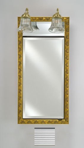 FeaturesSatin anodized aluminum body construction.Single mirror door.Traditional lights.3/4 Front bevel (standard).3/8 Adjustable glass shelves. Signature Single Door Medicine Cabinet with Traditional Lights Size: 17" x 40", Finish: Soho Fluted Chrome?