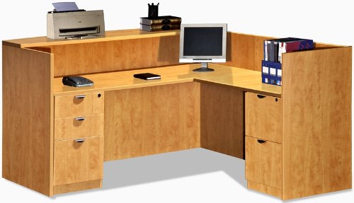 Honey Reception Station?The Marquis Laminate Collection is a premier desk series Clean lines and simple design Honey finish 3mm edge banding Thermal-fused laminate surface Ready to assemble Reception Station Includes: Reception Desk Shell 70.75''W x 30''/34''D x 40.5''H Reception Desk Return Shell Pedestal Box/Box/File with Lock 15.625''W x 22''D x 28''H Pedestal File/File with Lock 15.625''W x 22''D x 28''H Pedestals ship assembled to make installation of your office fast and simple Full suspension slides View entire Marquis Laminate Collection 5 year manufacturer's warranty